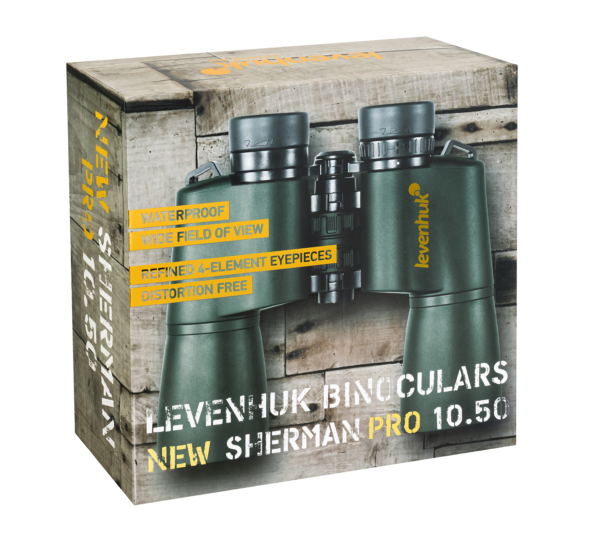 Levenhuk New Sherman PRO je řada binokulárních dalekohledů s porro hranoly s velkou aperturou. Jsou vybaveny vysoce kvalitní skleněnou optikou BaK-4 v mimořádně odolných duralových tělech, která jsou vhodná do každého počasí. Tento model s 10x zvětšením, 50 mm objektivem a vysokou relativní světelností je vynikajícím nástrojem pro pozorování ptáků, lov a turistiku. Díky svým optickým a praktickým vlastnostem je spolehlivou volbou i pro odborníky: geodety, topografy, pracovníky v energetice atd. Čočky a hranoly s vícenásobnou antireflexní vrstvou poskytují ostrý a barevně bohatý obraz. Zařízení se může pochlubit vysokým faktorem stmívání pro efektivní sledování nejen ve dne, ale i večer. Zorné pole je 114 metrů při 1 000 metrech.