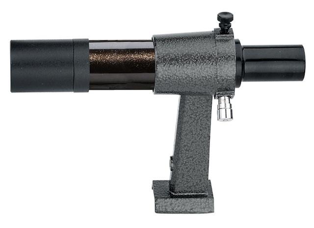 Přímý hledáček 6x30 (převrací obraz jak stranově tak výškově), vč. úchytu do botky SkyWatcher. Kolimace pomocí dvou nylonových šroubků proti čepu pod pružinou.