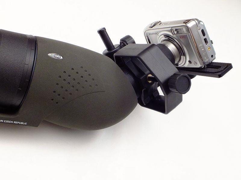 Kompaktný, skladací univerzálny príchytka fotoaparáty za okulár MICROSTAGE II, použiteľná pre bežné kompakty, ale aj pre SRL a DSRL a väčšie kompaktné prístroje. Funkčné pre okuláre / tubusmi 1,25 "i 2". Pohyb v troch smeroch: v osovej vzdialenosti za okulárom a v dvoch na ňu kolmých smeroch. Príchytný skrutku na statív. Dodávaný v koženkovom puzdre.