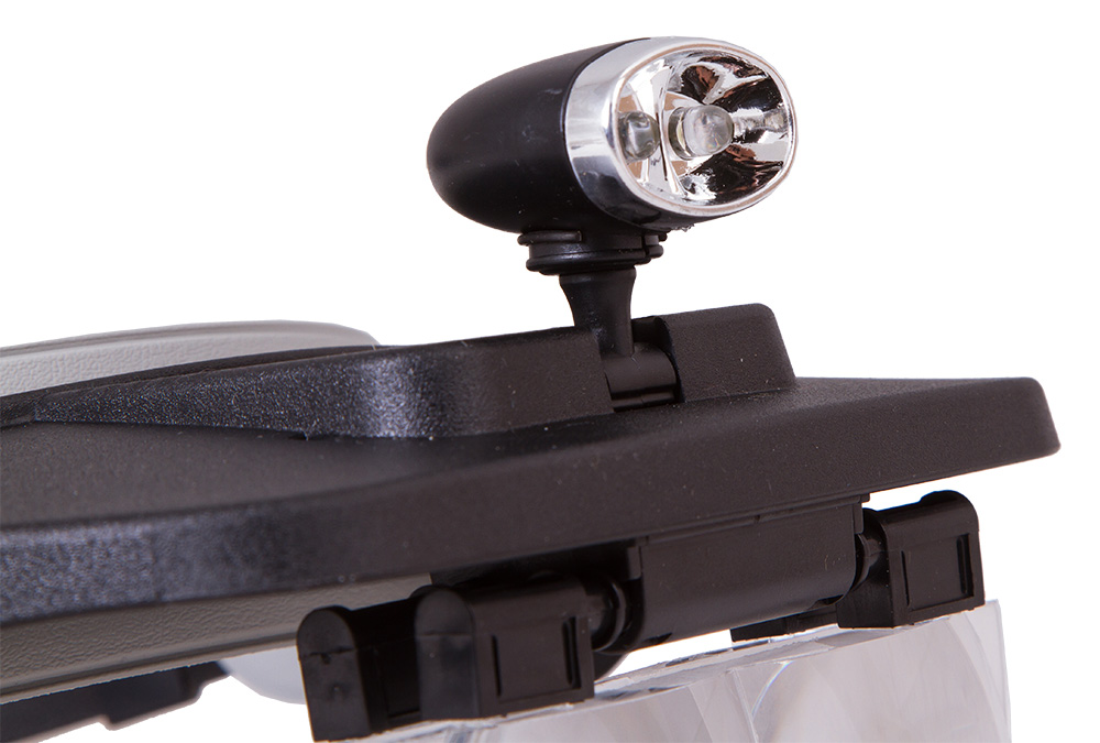 Všetky šošovky sú vyrobené z kvalitného optického plastu. Neskresľujú farby a drobné detaily a umožňujú vám uvidieť na pozorovaných predmetoch ostré kontúry. K hlave sa upevňuje pomocou čelenky, vďaka čomu máte úplne voľné obe ruky.