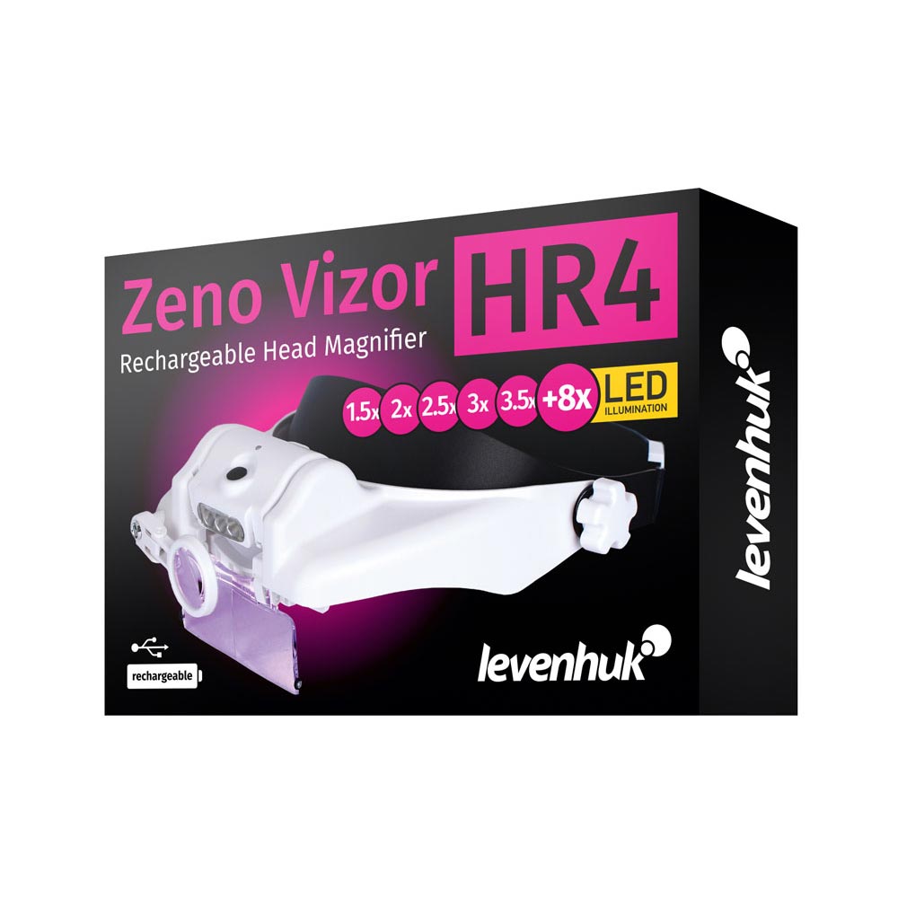 Dobíjacie náhlavnú lupa Zeno Vizor HR4 značky Levenhuk bude nepostrádateľným pomocníkom pri dlhodobej práci s drobným písmom alebo malými predmetmi. Upevňuje sa na hlavu ako čelovka a ponecháva tak obe ruky voľné pre prácu. Vymeniteľné šošovky s 1,5x až 3,5x zväčšením sa ľahko nacvaknite do špeciálneho držiaka.