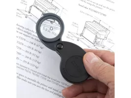 Kompaktná skladacia lupa s 5x, 10x a 15x zväčšením. Lupa sa skladá z 3 šošoviek, z ktorých každá má 5x zväčšenie. Postupným skladaním dostaneme 10x…