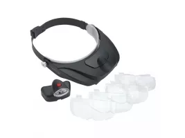 Náhlavná lupa so štyrmi výmennými šošovkami s postupným zväčšením 1,2x; 1,8x; 2,5x; 3,5x. Do čeľustí je možné zacvaknúť dve šošovky naraz a získať…