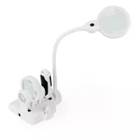 Ohybná kovová lupa so stabilnou základňou a 2 LED diódami nabíjaným batériami. Pevná šošovka s 2x priblížením (107 mm) a menšia šošovka (24 mm, 6 x).…